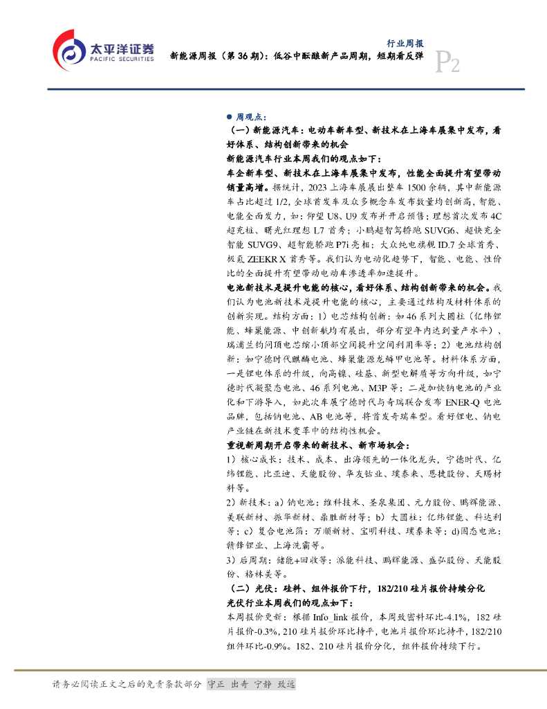 太平洋证券:新能源行业周报(第36期):低谷中酝酿新产品周期,短期看反弹.pdf