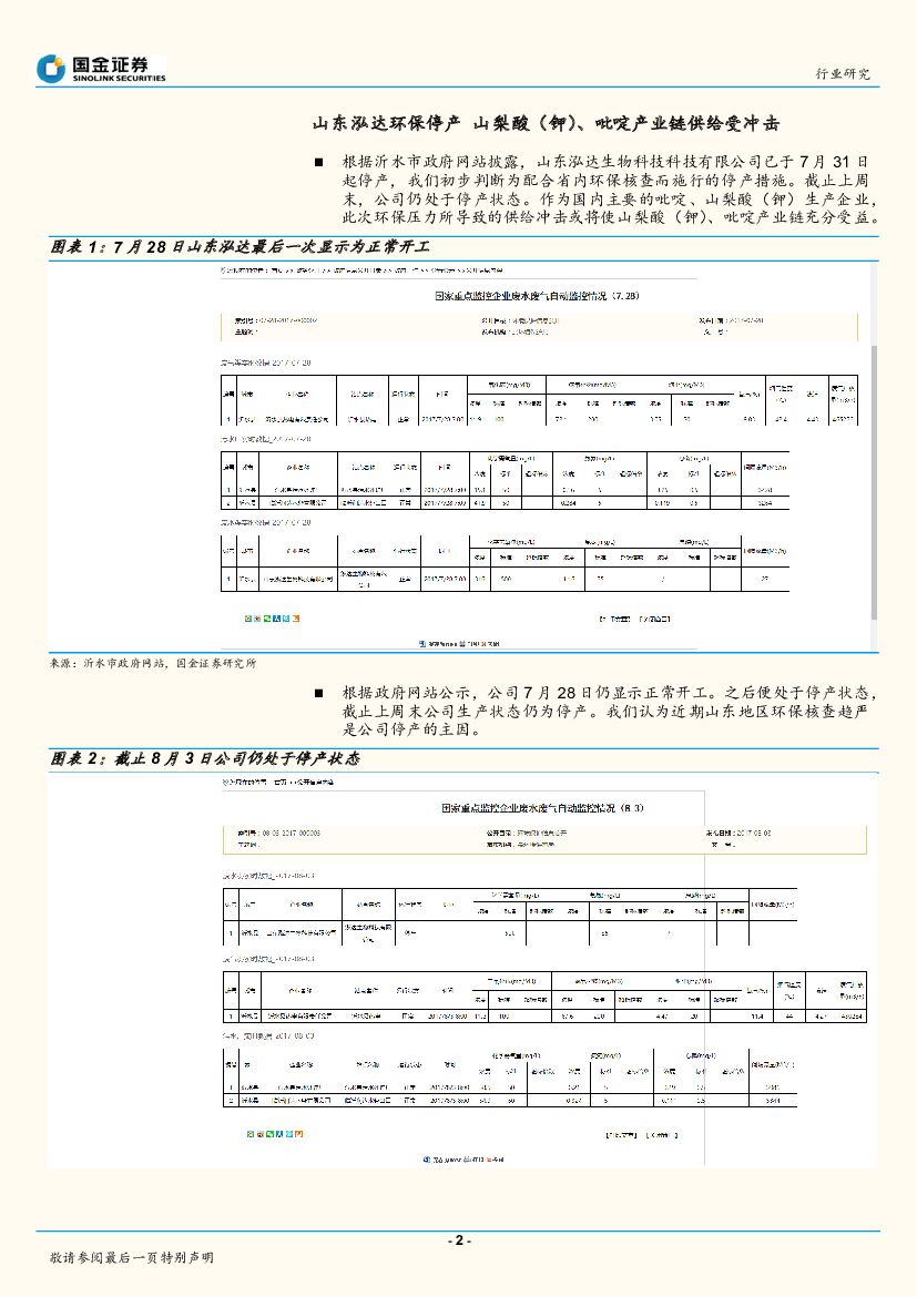国金证券:基础化工2017年日常报告:受益于环保冲击化工小品种产品系列报告之三:山东、浙江环保管控力度提升 山梨酸(钾)、吡啶产业链或将受益.pdf