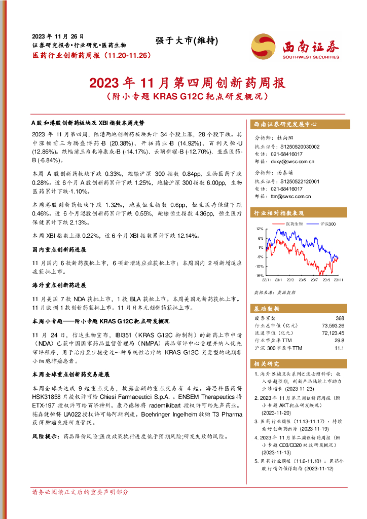 西南证券:2023年11月第四周创新药周报(附小专题KRASG12C靶点研发概况).pdf