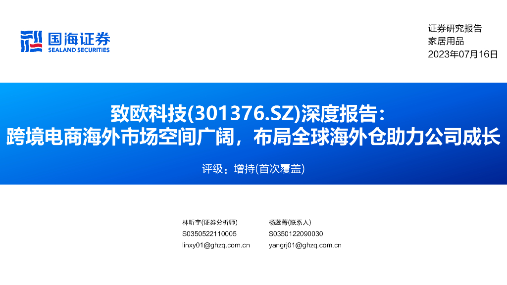 国海证券:致欧科技(301376)-深度报告:跨境电商海外市场空间广阔,布局全球海外仓助力公司成长.pdf