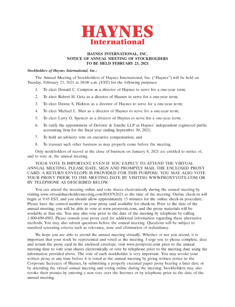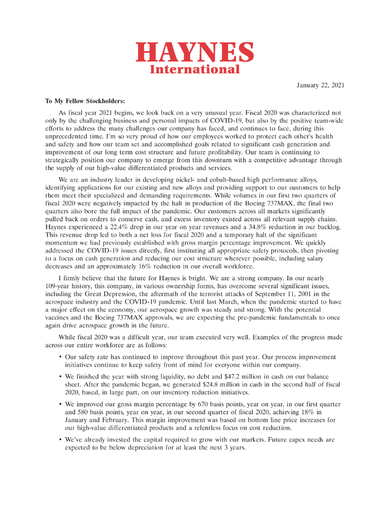 Haynes International Inc.(HAYN)2020财年年度报告(英文版).pdf