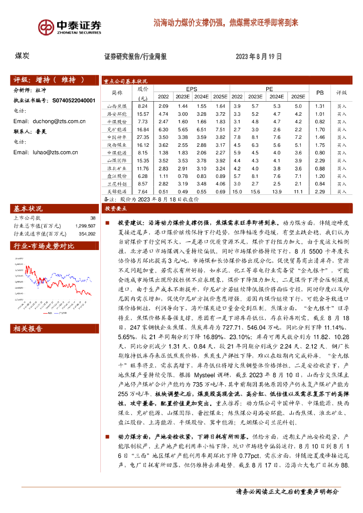 中泰证券:煤炭行业周报:沿海动力煤价支撑仍强,焦煤需求旺季即将到来.pdf