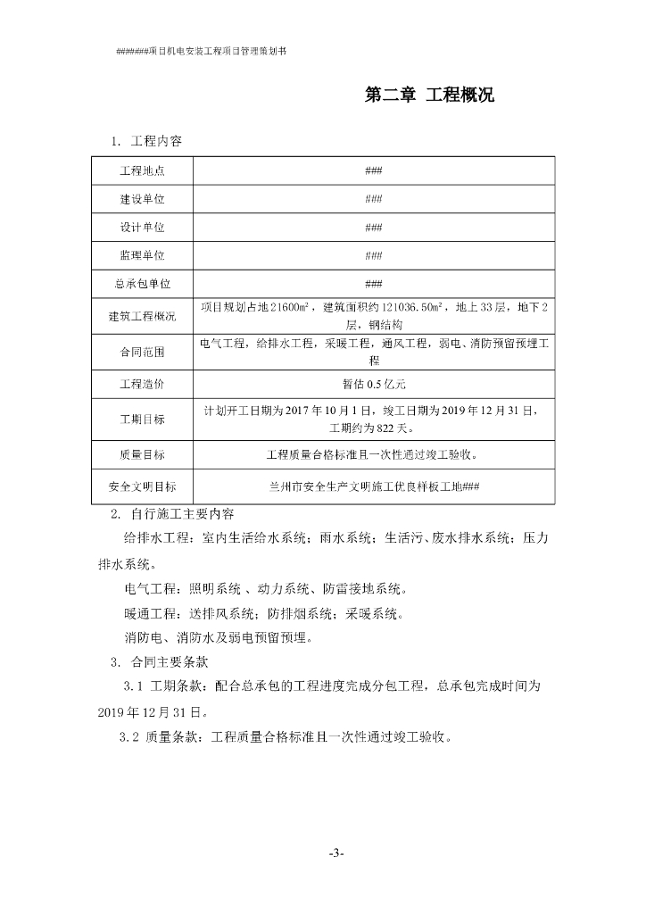 甘肃某住宅项目机电安装工程管理策划书.doc