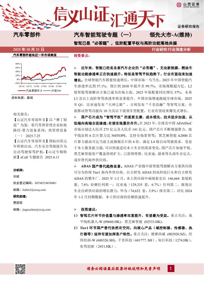 山西证券:汽车智能驾驶专题(一):智驾已是“必答题”,低阶配置平权与高阶功能落地共振.pdf