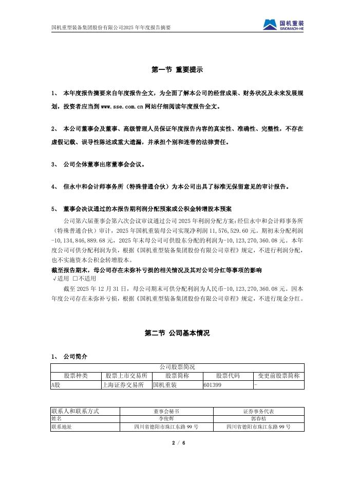 601399-国机重装:国机重装2025年年度报告摘要.pdf