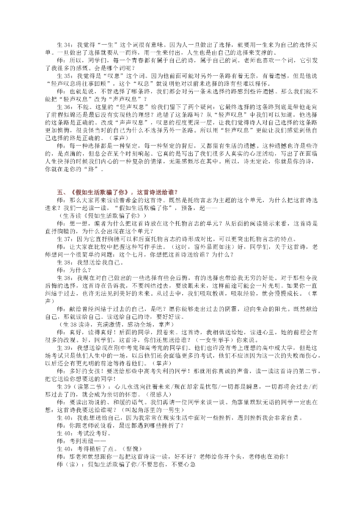 第20课《外国诗两首》教学实录2021-2022学年部编版语文七年级下册.doc