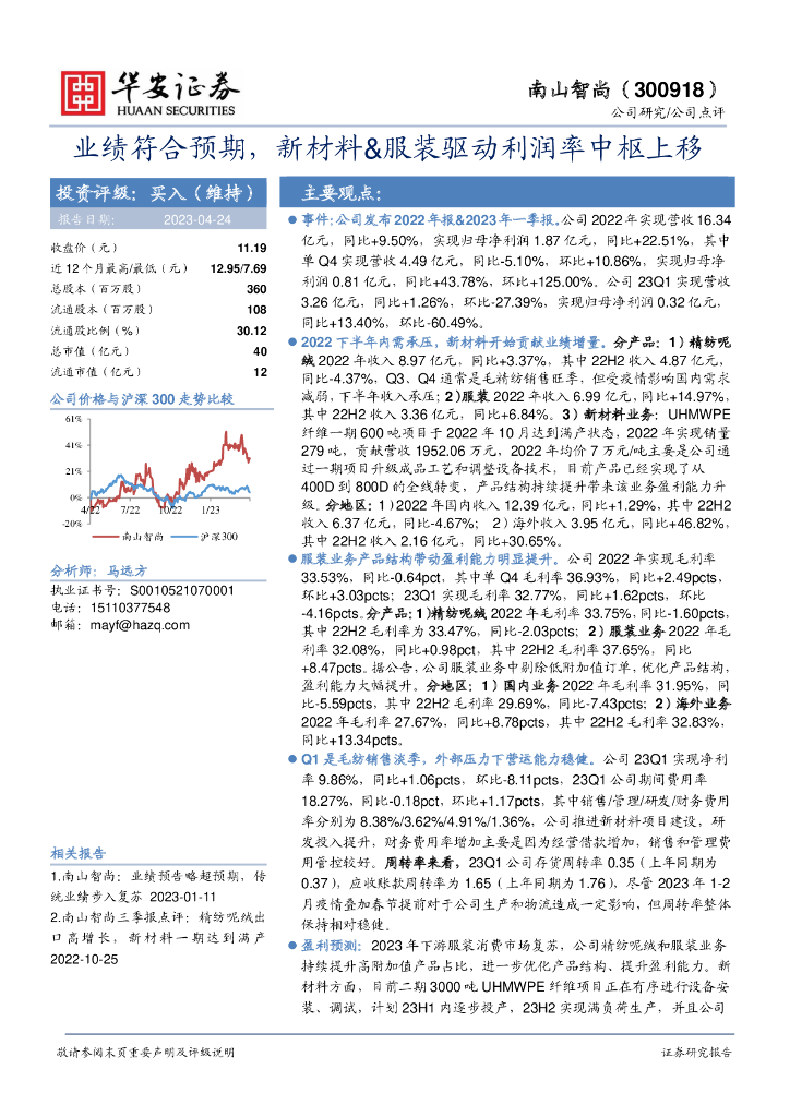 华安证券:南山智尚(300918)-业绩符合预期,新材料&服装驱动利润率中枢上移.pdf