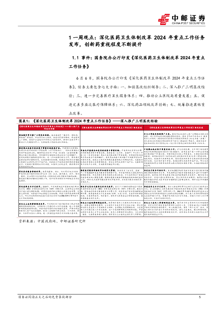 中邮证券:医药生物行业周报:医药生物行业报告深化医药卫生体制改革2024年重点工作任务发布,创新药重视程度不断提升.pdf