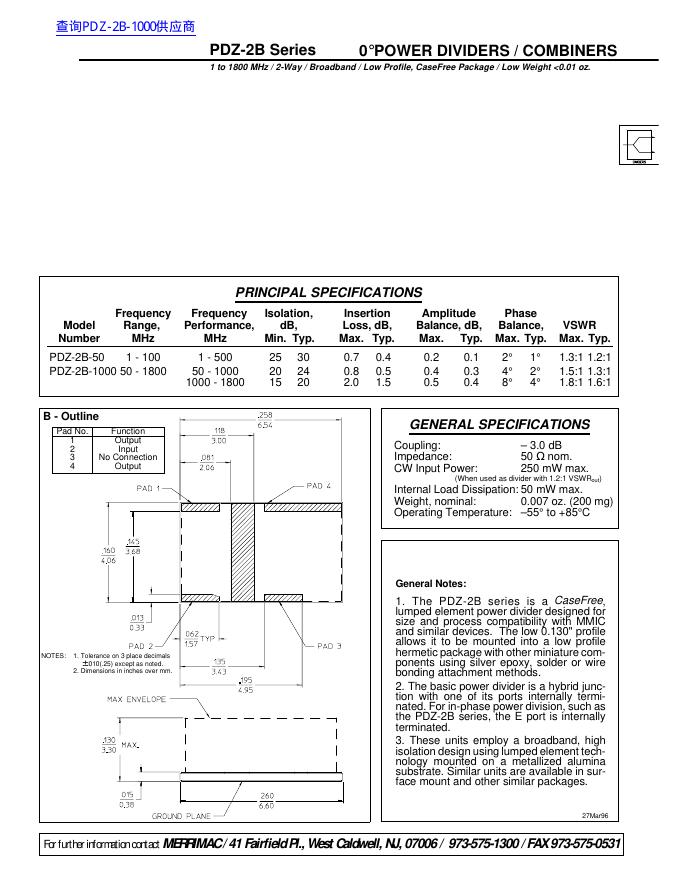 PDZ-2B Series 0°POWER DIVIDERS / COMBINERS 数据手册.pdf