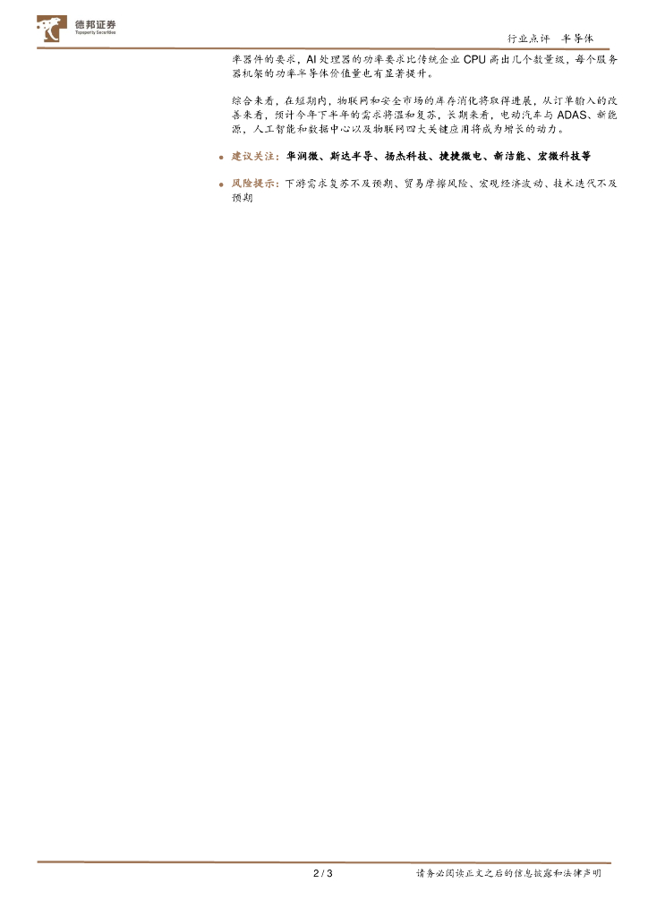 德邦证券:半导体行业点评:需求复苏+库存去化接近尾声,功率半导体否极泰来.pdf