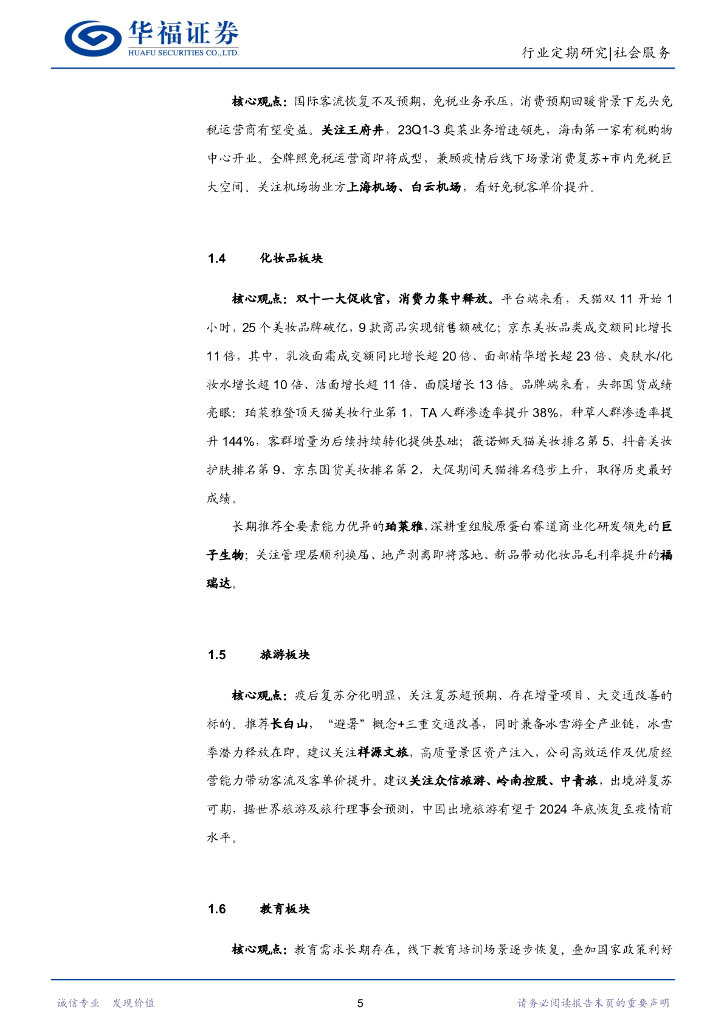 华福证券:社会服务行业周报:出行复苏分化明显,双十一收官消费力集中释放.pdf