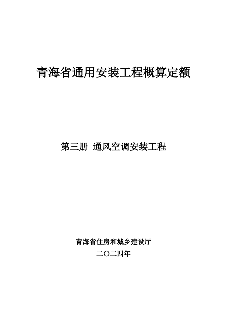 青海省住房和城乡建设厅:2024年青海省通用安装工程概算定额(第三册 通风空调安装工程).pdf