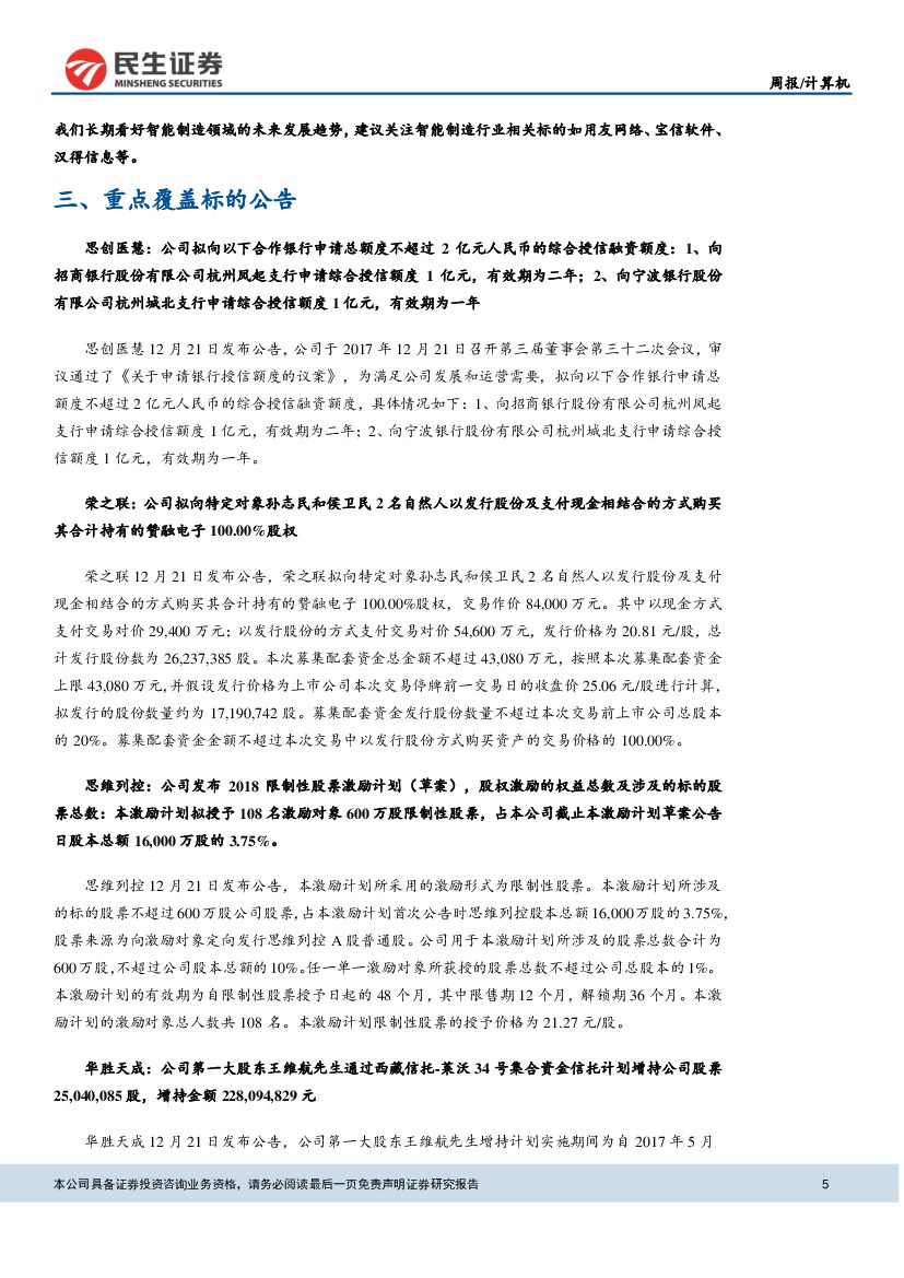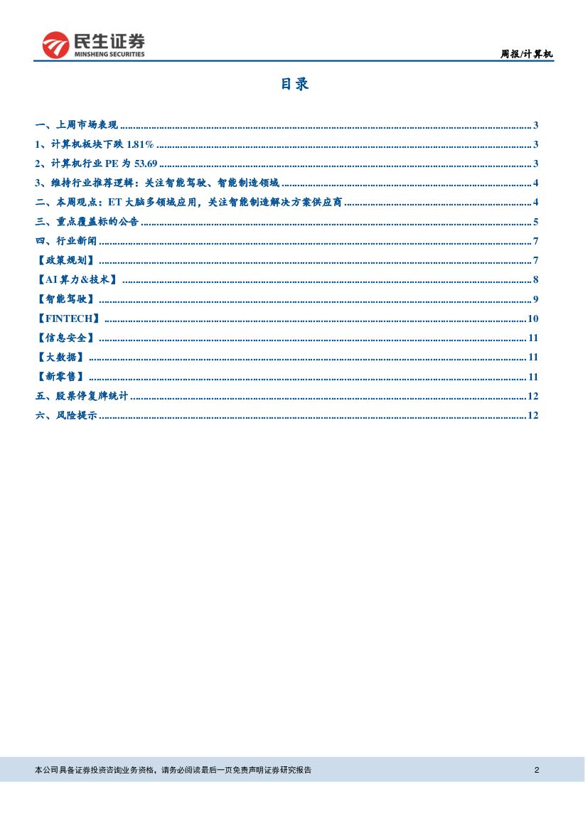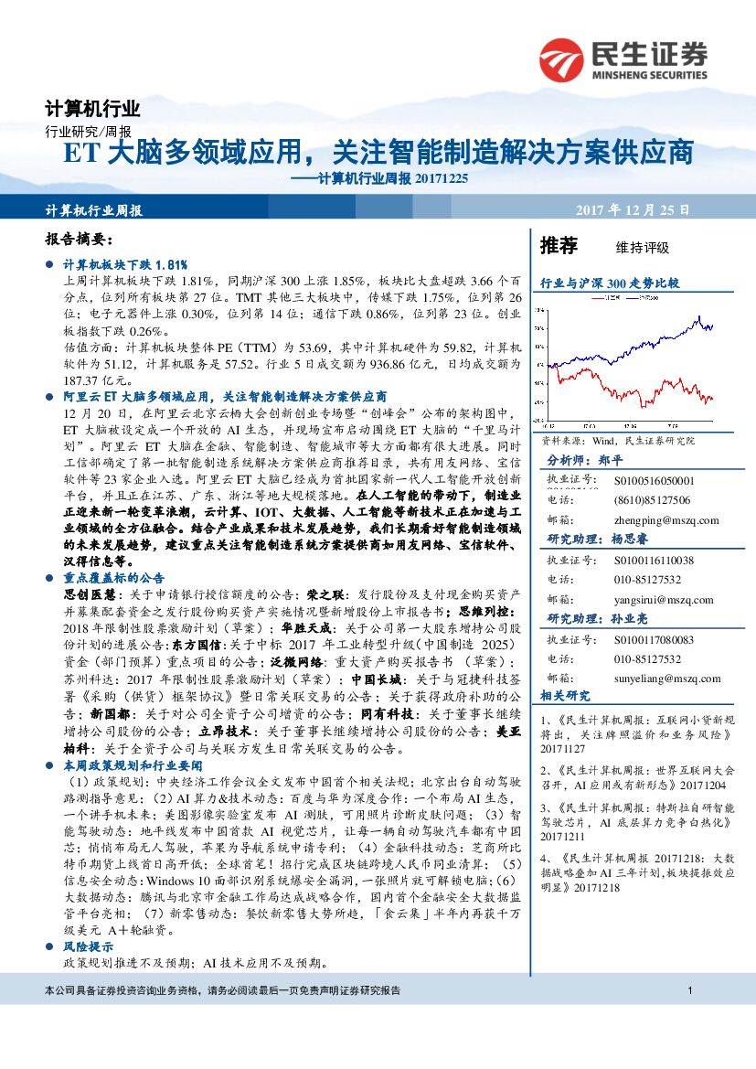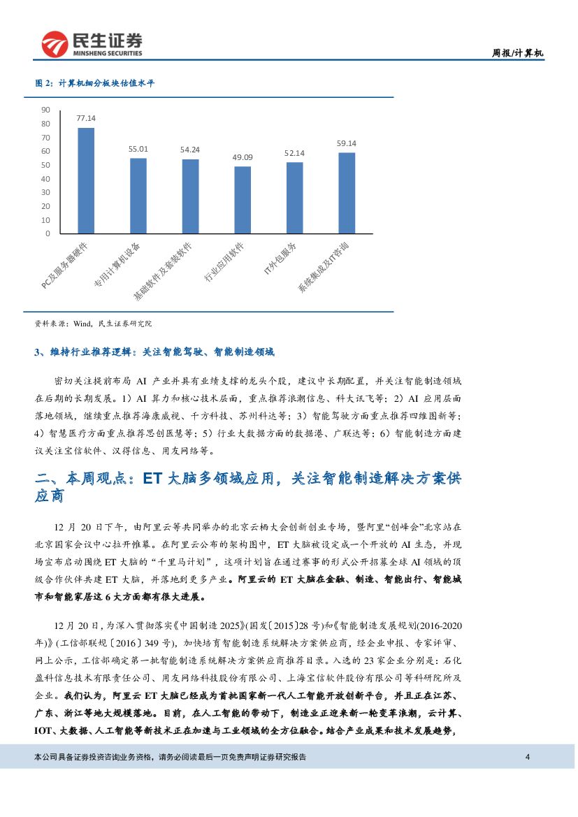民生证券:计算机行业周报:ET大脑多领域应用,关注智能制造解决方案供应商.pdf
