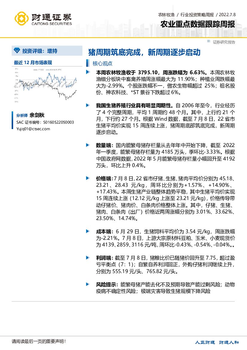 财通证券:农业重点数据跟踪周报:猪周期筑底完成,新周期逐步启动.pdf