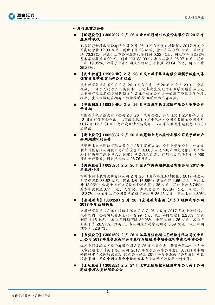 国金证券:教育行业2018周报第7期:四部门开展校外培训机构专项治理,需求不减,对大型机构冲击或较小.pdf