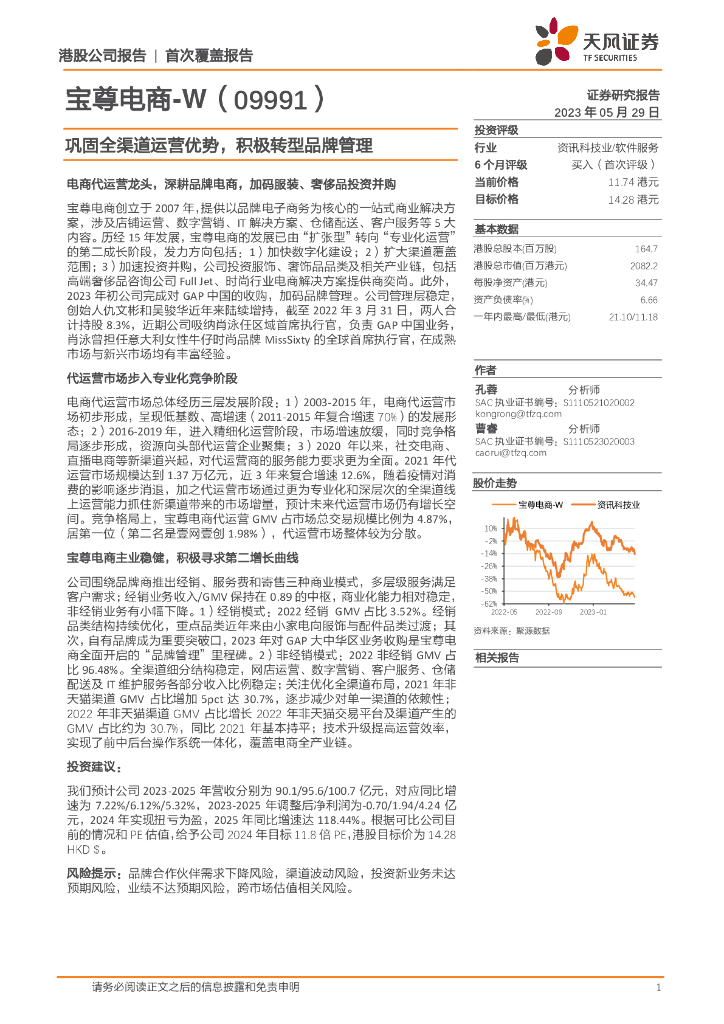 天风证券:宝尊电商-W(09991)港股公司研究报告-巩固全渠道运营优势,积极转型品牌管理.pdf