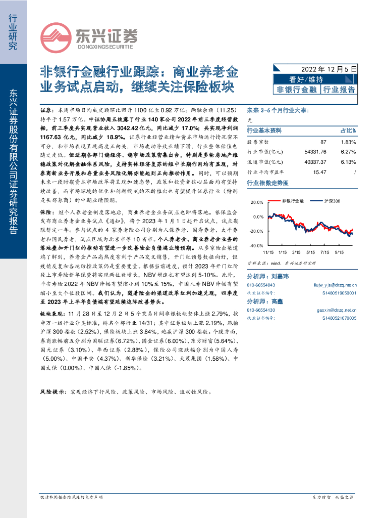 东兴证券:非银行金融行业跟踪:商业养老金业务试点启动,继续关注保险板块.pdf