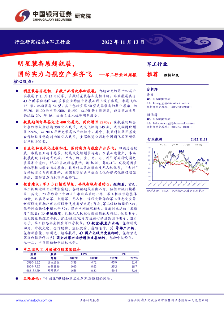 中国银河:军工行业双周报:明星装备展翅航展,国防实力与航空产业齐飞.pdf