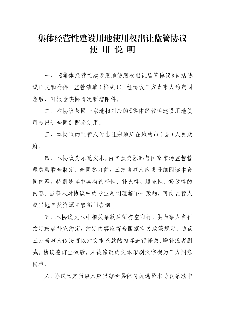自然资源部:《集体经营性建设用地使用权出让监管协议》示范文本(试点试行).pdf