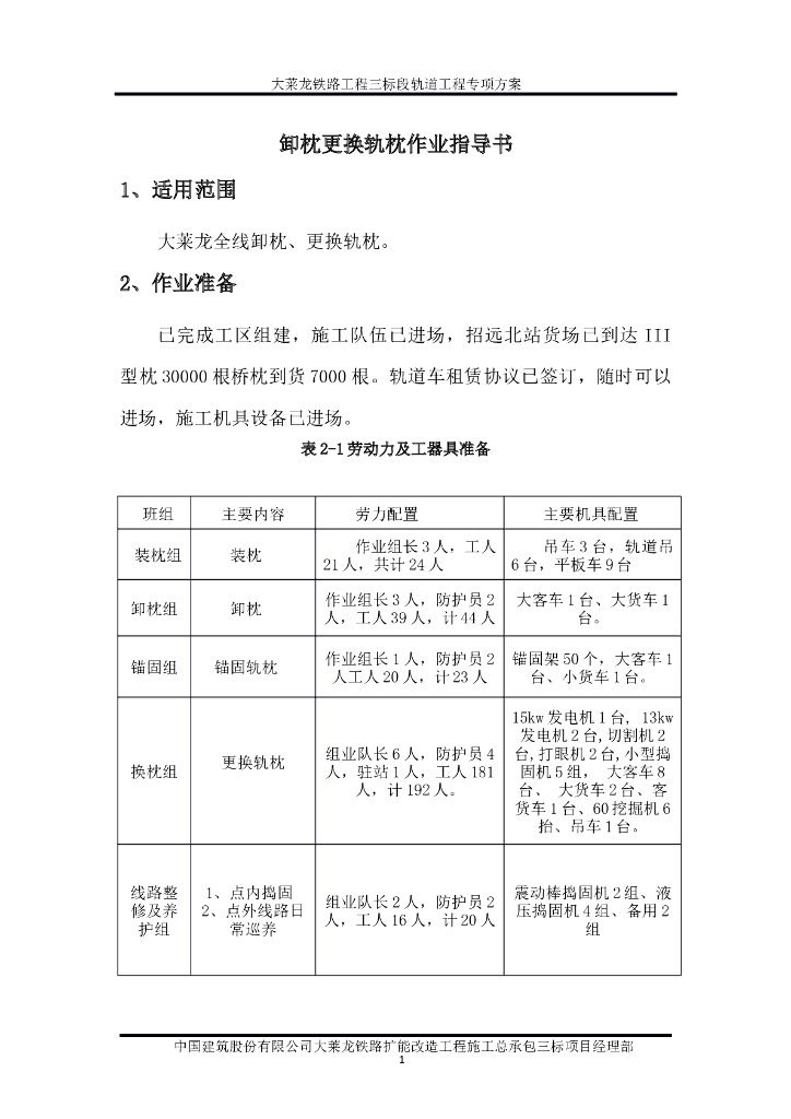 [中建]铁路扩能工程卸枕更换轨枕作业指导书.doc
