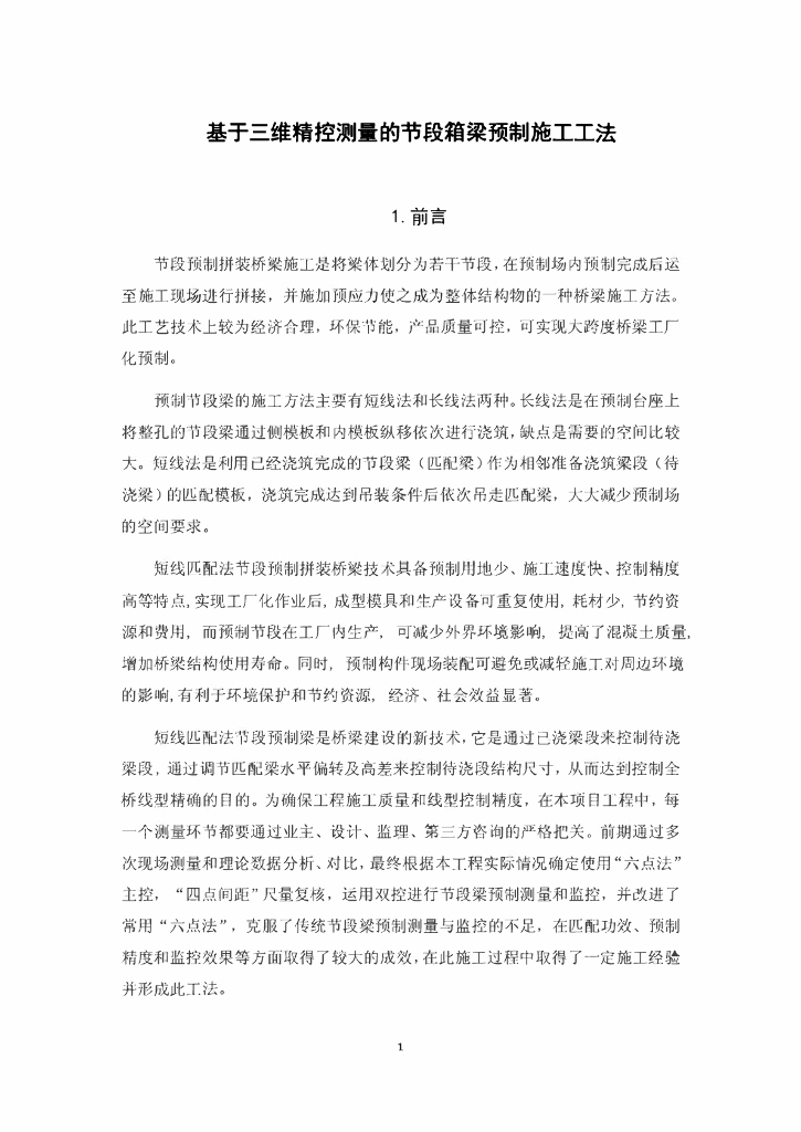 基于三维精控测量的节段箱梁预制施工工法.pdf