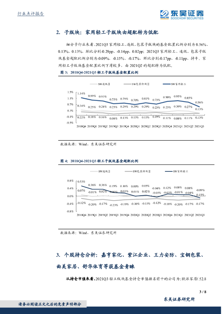 东吴证券:轻工制造行业21Q3基金持仓点评:轻工板块延续低配,细分赛道龙头及低估值公司受机构青睐.pdf