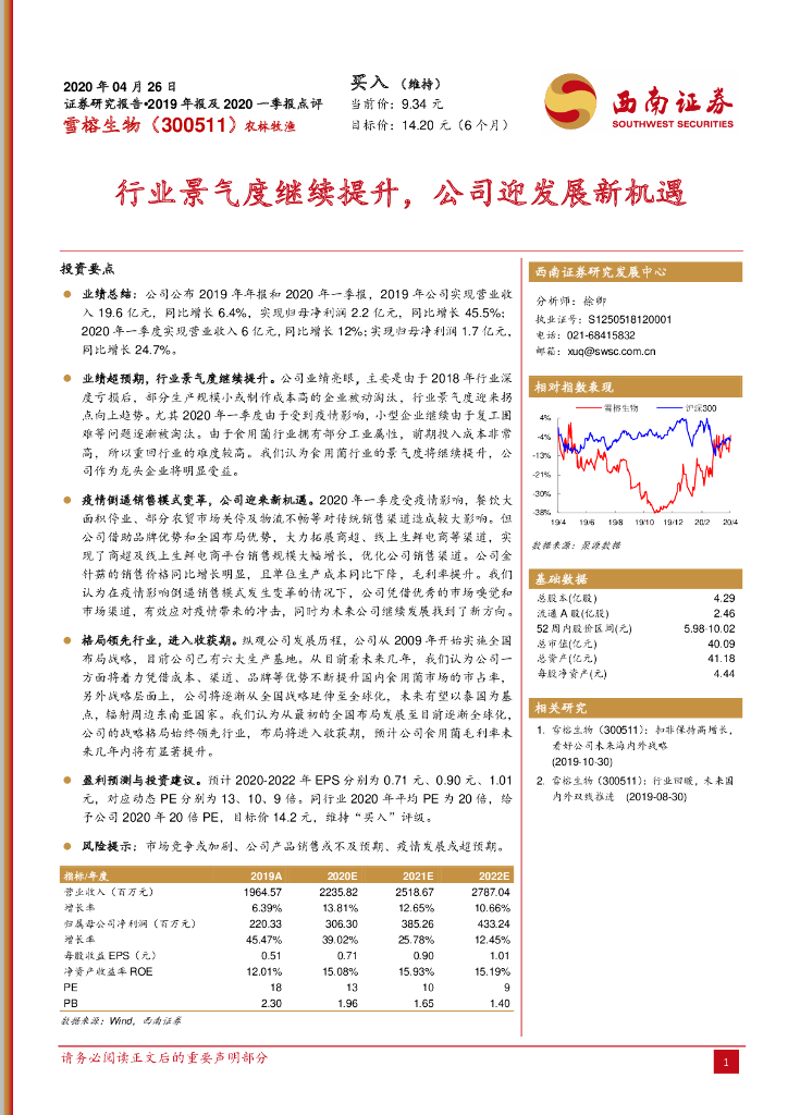 西南证券:雪榕生物(300511)-行业景气度继续提升,公司迎发展新机遇.pdf