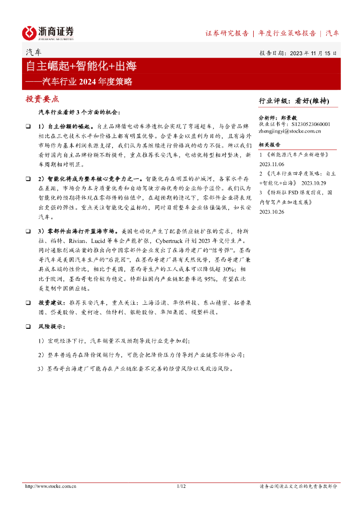 浙商证券:汽车行业2024年度策略:自主崛起+智能化+出海.pdf
