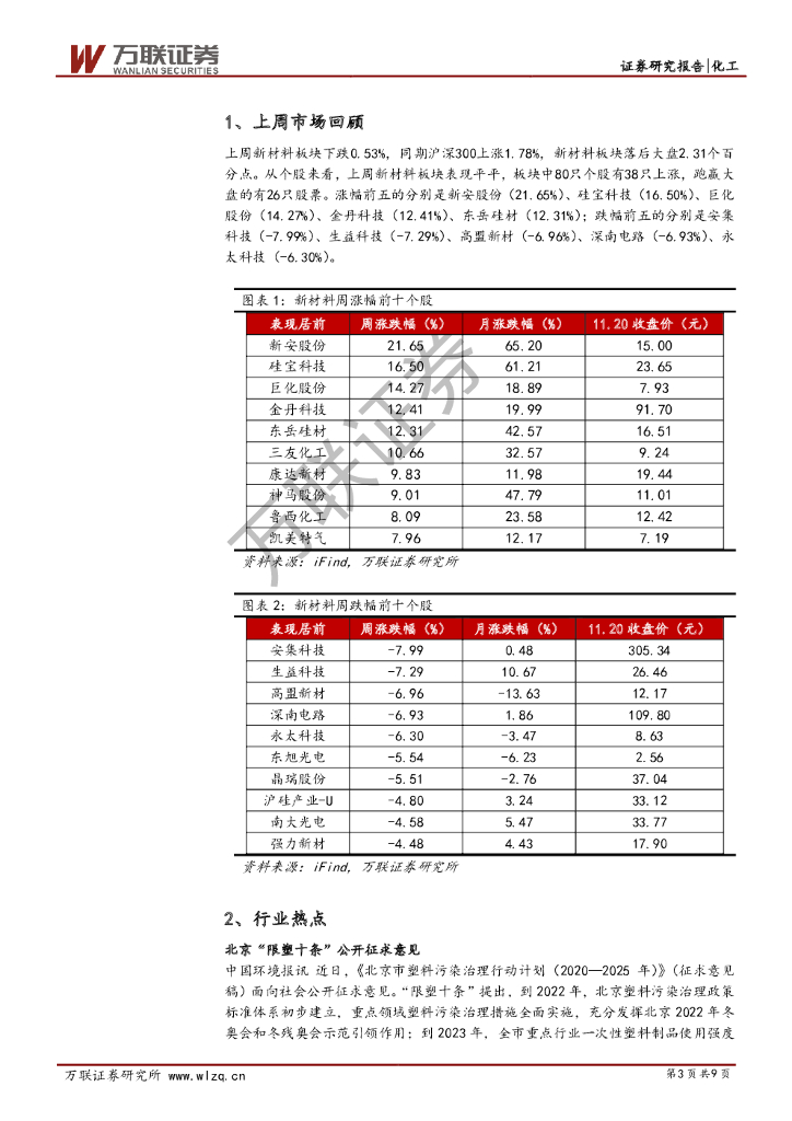 万联证券:新材料板块周观点:有机硅全线大涨,可降解塑料概念走强.pdf