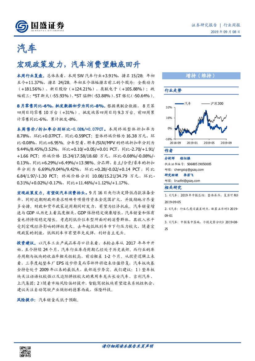国盛证券:汽车行业周报:宏观政策发力,汽车消费望触底回升.pdf