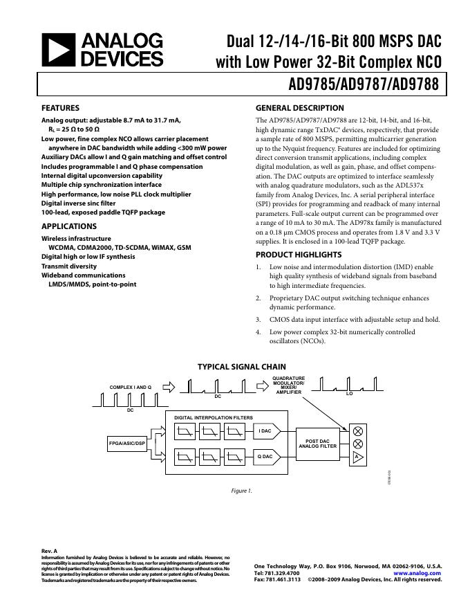 ANALOG DEVICES AD9785 英文产品数据手册.pdf