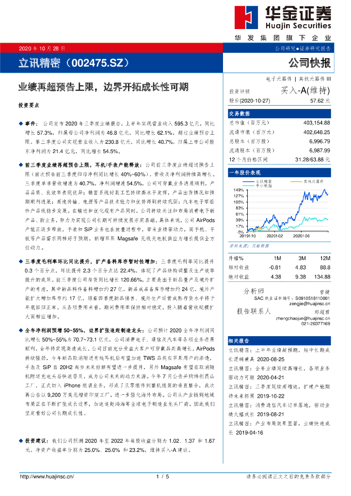华金证券:立讯精密(002475)-业绩再超预告上限,边界开拓成长性可期.pdf