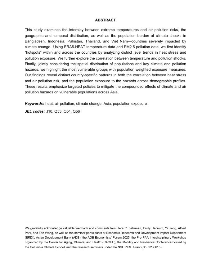 ADB亚洲开发银行:热应激、空气污染风险和人口暴露:来自选定亚洲国家的证据(英文版).pdf