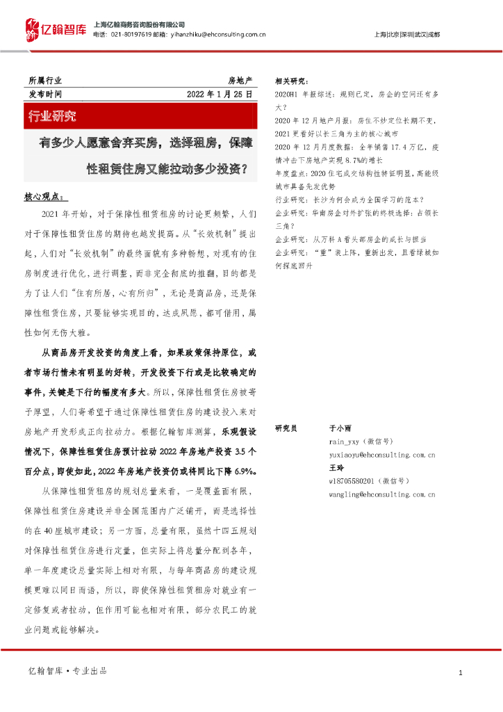 亿翰智库:房地产:有多少人愿意舍弃买房,选择租房,保障性租赁住房又能拉动多少投资?.pdf