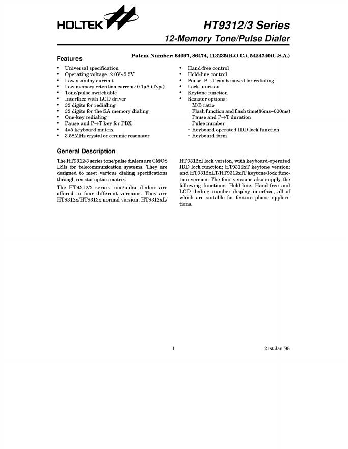 HOLTEK HT9312/3 Series 数据手册.pdf