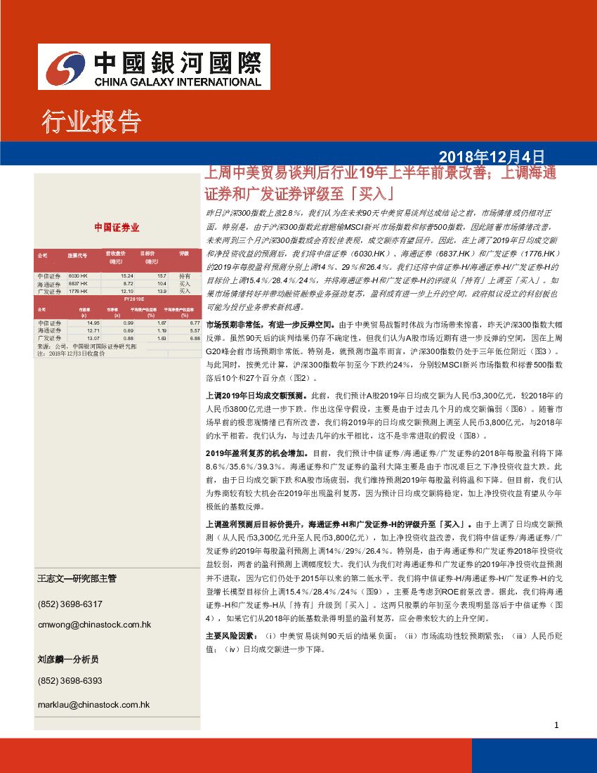 中国银河国际证券:上周中美贸易谈判后行业19年上半年前景改善;上调海通证券和广发证券评级至「买入」.pdf