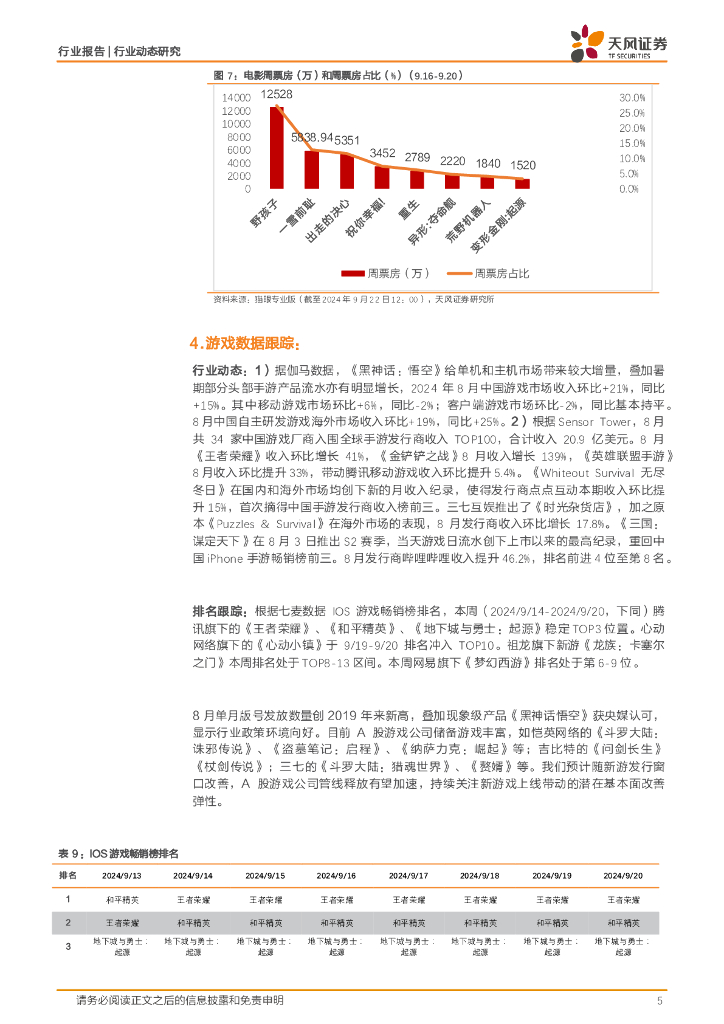 天风证券:传媒行业周报第38周:《黑神话悟空》带动8月游戏市场流水明显,关注A股Q4游戏管线释放进展.pdf