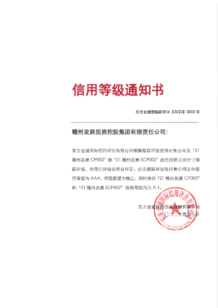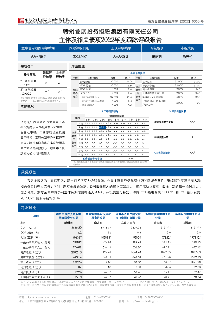 东方金诚:赣州发展投资控股集团有限责任公司主体及相关债项2022年度跟踪评级报告.pdf
