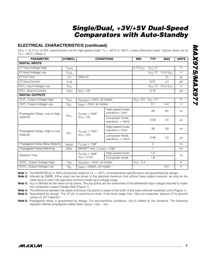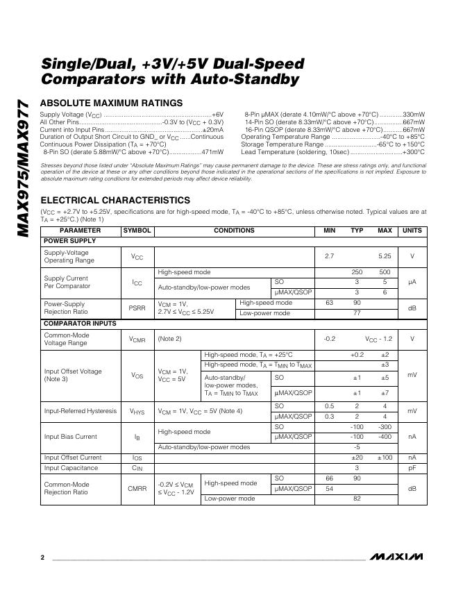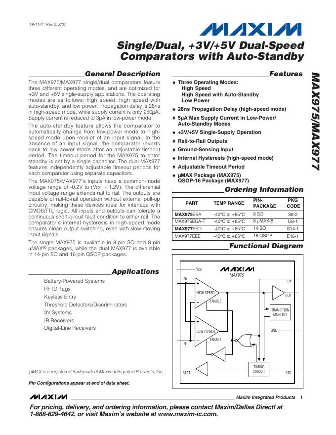 MAXIM MAX975/MAX977 Single/Dual, +3V/+5V Dual-Speed Comparators with Auto-Standby 数据手册.pdf