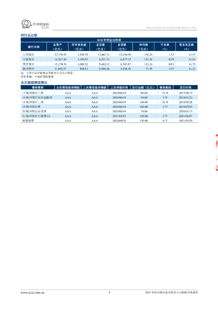中诚信:杭州银行股份有限公司主体评级报告.pdf