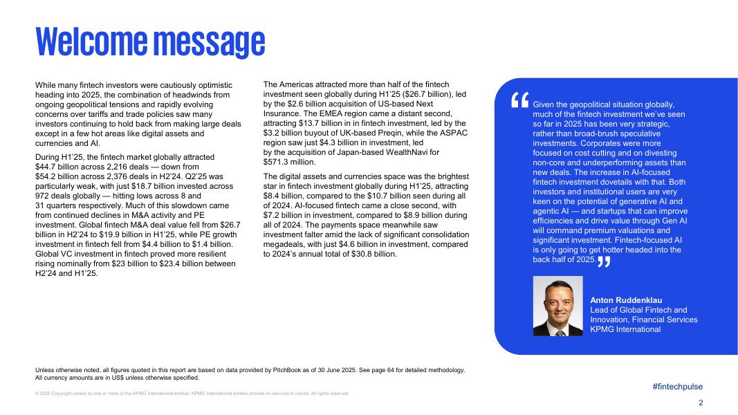 毕马威:2025年上半年金融科技动向报告:全球金融科技融资分析(英文版).pdf