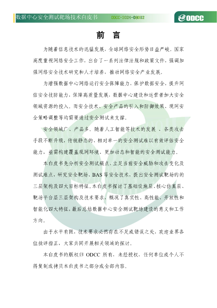 ODCC开放数据中心委员会:2024年数据中心安全测试靶场技术白皮书.pdf