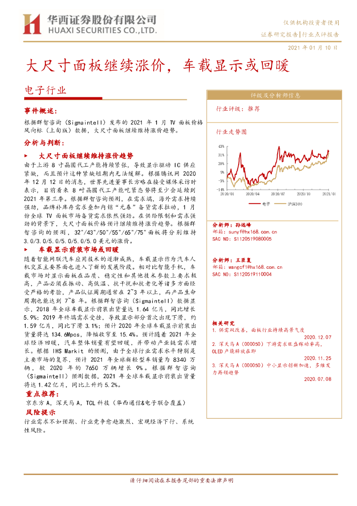 华西证券:电子行业:大尺寸面板继续涨价,车载显示或回暖.pdf