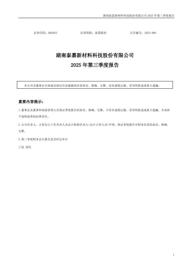 002843-泰嘉股份:2025年三季度报告.pdf