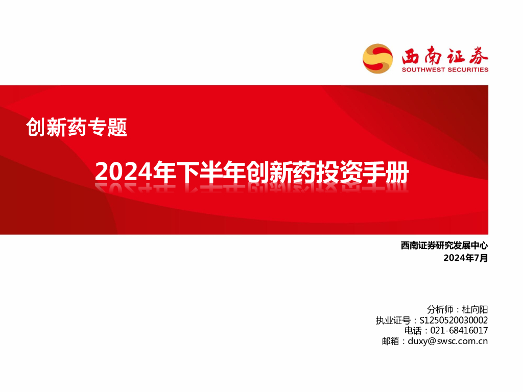 西南证券:创新药专题:2024年下半年创新药投资手册.pdf