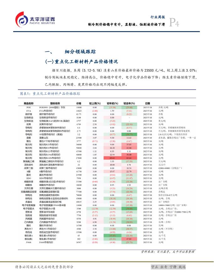 太平洋证券:基础化工行业化工新材料周报:制冷剂价格稳中有升,显影液、蚀刻液价格下滑.pdf