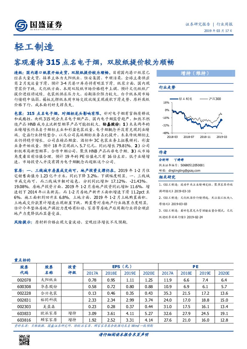 国盛证券:轻工制造行业周报:客观看待315点名电子烟,双胶纸提价较为顺畅.pdf