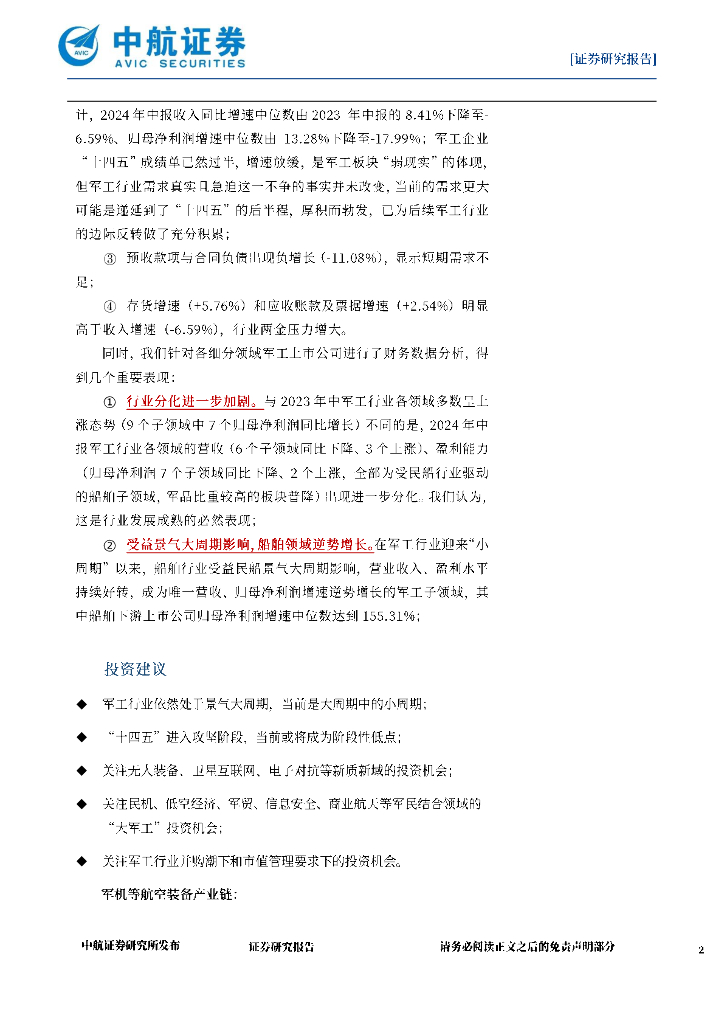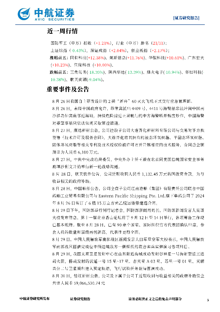 中航证券:军工行业周报:十年“最差”中报,中期“最好”消息.pdf