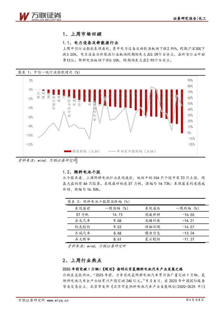万联证券:燃料电池行业周观点:35MPa加氢机获国际认证,燃料电池汽车产销亮眼.pdf