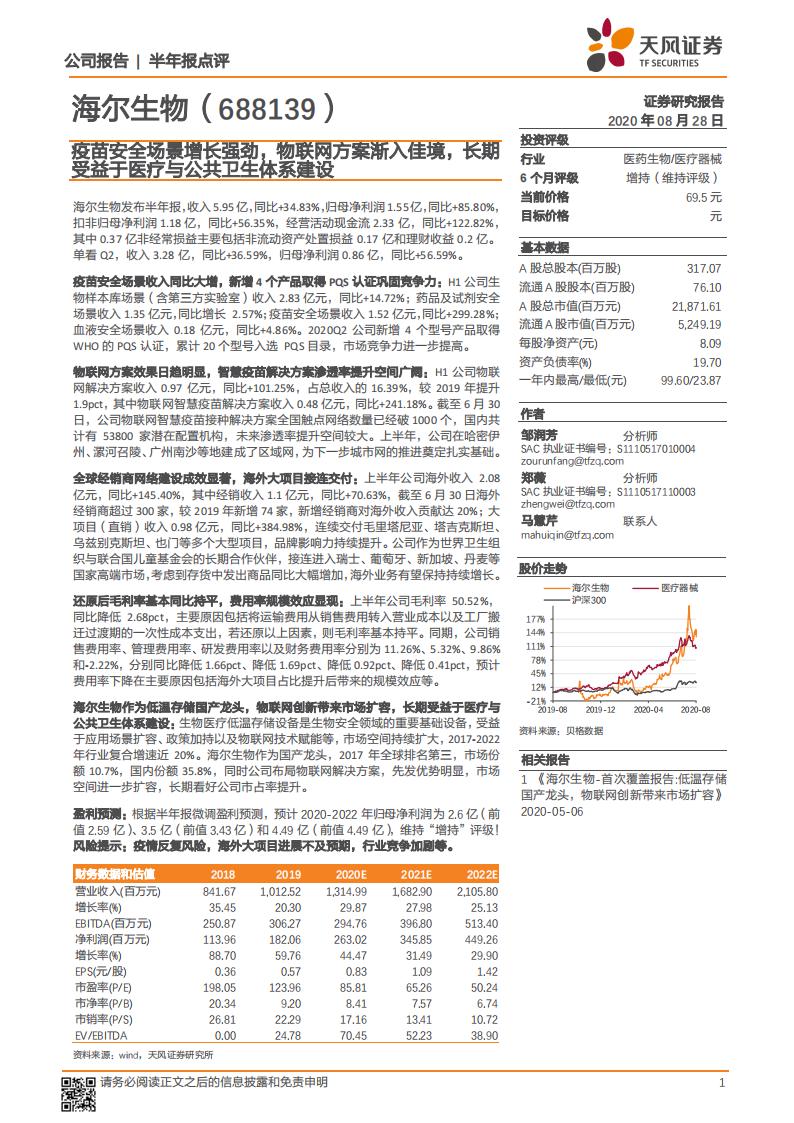 天风证券:海尔生物(688139)-疫苗安全场景增长强劲,物联网方案渐入佳境,长期受益于医疗与公共卫生体系建设.pdf
